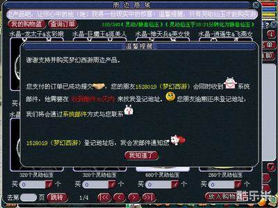 4、玩家确认支付订单后,如果灵动仙玉数量充足,则完成购买,如果灵动仙玉不足,则购买失败。具体灵动仙玉兑换请浏览仙玉系统介绍。