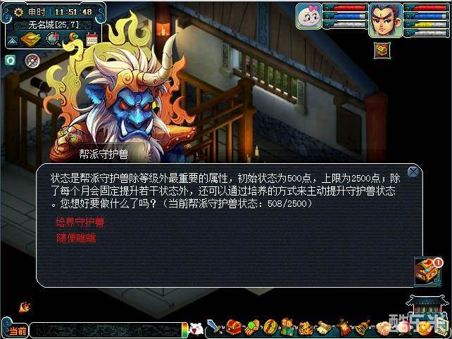 3)帮派成员也可以通过守护兽培养任务来主动提升守护兽的状态;