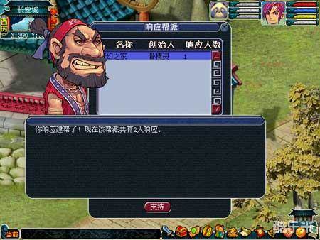 如果要响应别人的建帮申请,可以和“帮派主管”对话后选择“响应建帮”,在弹出的列表中选择要响应的帮派名称,再点“响应”即可。