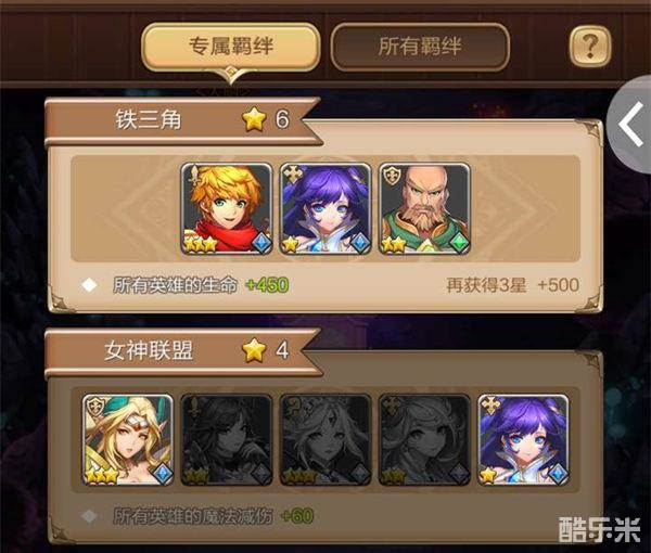 羁绊系统是一个很有趣的系统,玩家可以通过收集几个拥有共同羁绊的英雄,且这些英雄的星级累计达到激活要求,即可激活对应的羁绊属性。而且拥有这些英雄后,即使英雄不出战也能提供羁绊属性加成。