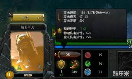 护甲与物理减伤的计算是按照以下公式的:当护甲值为x时,护甲值减少的物理伤害y=0.06x/(1+0.06x)。我们来验证一下,小小的初始护甲为0.26,由于数据显示不显示小数点,面板显示护甲为0,将护甲值代人计算公式得减少的物理伤害为0.0153即1.53%面板显示物理抗性为1%。