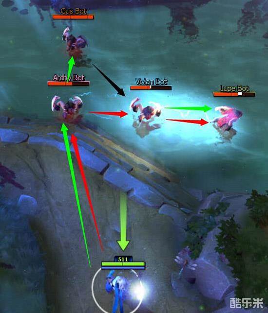 因为静电场的存在,你必须了解周围小怪的技能和对面的位置来判断小怪是不是有用,是否需要避开,或者走位让小兵抗,让对面被追击的目标吃这个伤害,有时候小怪可以帮你作为闪电链的传导目标,有时候会给你们一人来一发波,或者是踩,最好的情况是拉野那个位置的幽魂小怪给你追击的目标来个35%减速那个效果。