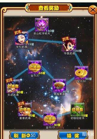 占星一直是让我比较头疼的问题,我只有一条项链是占星出的。现在马上要出第二条了,也就是说我两个多月的时间里根本没几次到达过定点。原因有二,其一我刚开始玩的时候没有占星奖励升级一说(不会是我自己当时脑残没看到吧,轻喷),没有限时武将魂魄的吸引真的不想花那么多金币去占星。其二,因为占星真的是太蛋疼了,又是后300+金币进去都没登顶。一条项链2000-3000金币有点承受不起。因此我建议大家就是前期占星弄一条项链之后,就等自己需要的限时武将魂魄出现在奖励中,或奖励中金币比较的时候(有时候里面有80多金币)时选择登顶。慢慢攒就好,毕竟咱的金币是用来抽限时武将的。