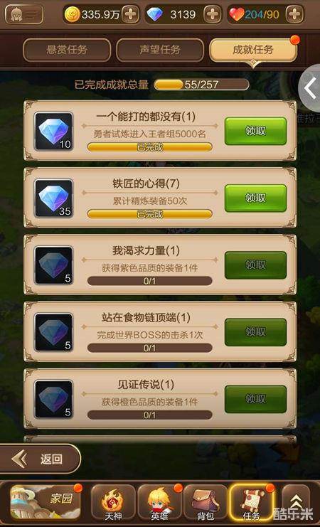 成就系统的界面被整合在任务界面内,点击任务页面上方的“成就任务”就能进入成就系统的界面中。成就界面最上方会显示已完成成就/成就总量,以及相应的进度条。