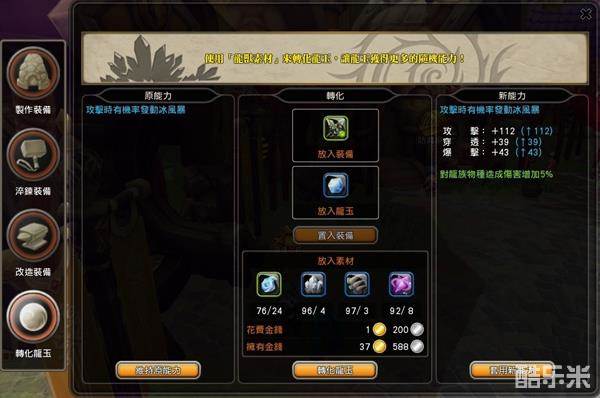 想要发挥猎人真正的实力,就需要强力的道具装备,追求强力的镶崁龙玉更是所有猎人们的目标,镶崁龙玉是游戏的另一大特色,除了让玩家的武器外观有全新的特效,还增添了如「火球术」、「冰风暴」、「连锁闪电」以及「魔力护盾」…等众多强力功能,可以使猎人们的武器不仅有特效炫丽外表,同时威力也会更加强大!让猎人们做好准备挑战更高难度的龙兽!