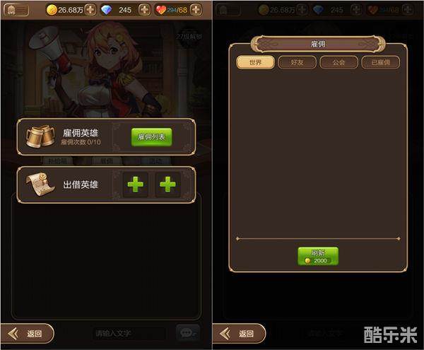 ·根据雇佣英雄的来源分为世界、好友、公会三种。