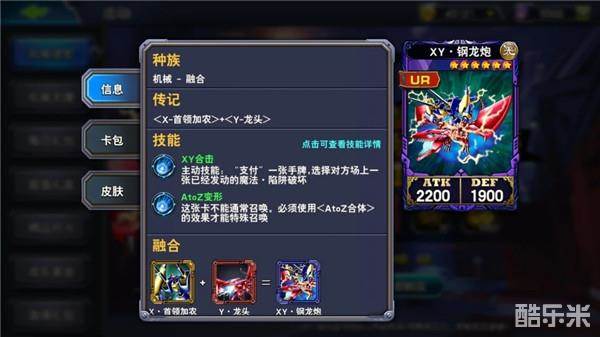 而新版的XY钢龙炮已经成为稳定的狙击手了,支付一张手牌破坏一张指定的魔陷卡。而且解决了融合卡组一个非常头痛的问题,非常吃融合。他的融合素材中的Y和Z入场可以拿到一张魔法卡,靠它可以除外素材从额外卡组把XY钢龙炮召唤出来了。