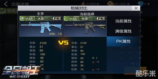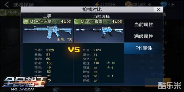 在属性方面,小编也是和M4系列的3个层次进行了比较,首先是和M4A1比较,这把冰晶在精准上低了M4A1一点,但在换弹、载弹和轻便这三个属性上分别加强了4、5和1点,所以说这把枪在续航和移动方面有所提高。其次是和M4A1-突袭比较,这把枪在精准上也是低1点,在换弹和轻便上分别多出2和1点,所以这把枪在属性上要略比突袭更突出一点移动方面。最后和神器M4A1-极寒比较了一下,这把枪在属性上海市比不上老牌神器,在射速、精准和载弹上分别少10、5和1点。总结来看这把枪在射速上不足,精准欠缺,续航和移动方面还不错。