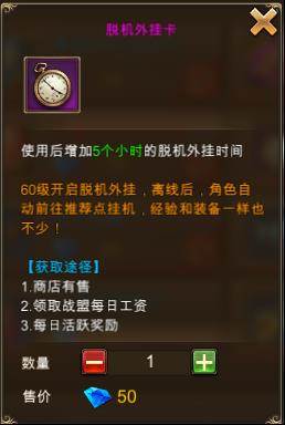 4.系统每日会赠送一定时长的挂机时间,您还可以通过购买脱机外挂卡来增加挂机时长哦!