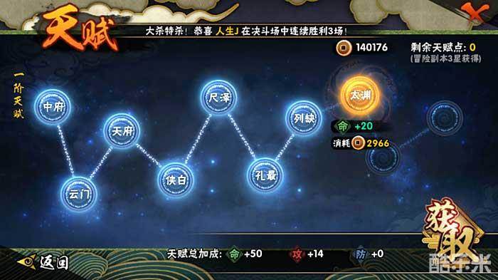 天赋系统增加的属性可以覆盖你所拥有的全部忍者,开启新天赋需要消耗刷副本获得的天赋点,只有通关新副本时才会获得天赋点,是一个贯穿前、中、后期的玩法。