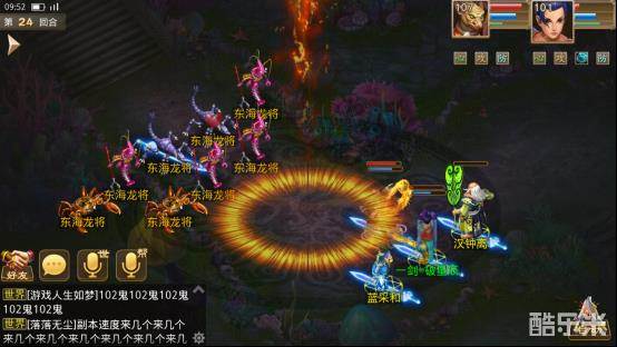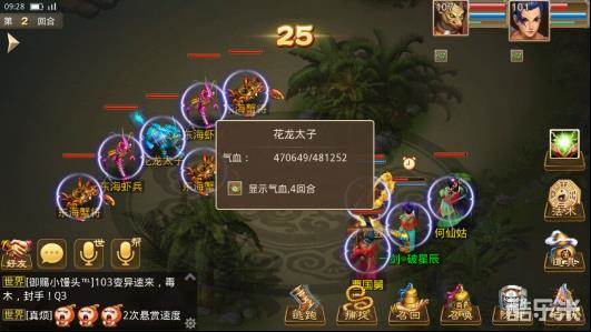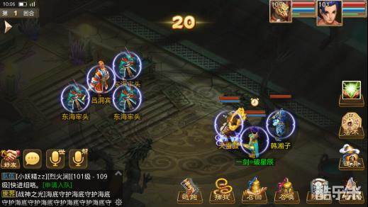 按照提示,找到了龙王敖广。敖广血量在55W左右,速度在1600以上,会使用力破千钧技能,伤害在7600--1W左右,会给自己拉五色光环和乾坤罩,建议使用力破千钧技能,看好自身血量。