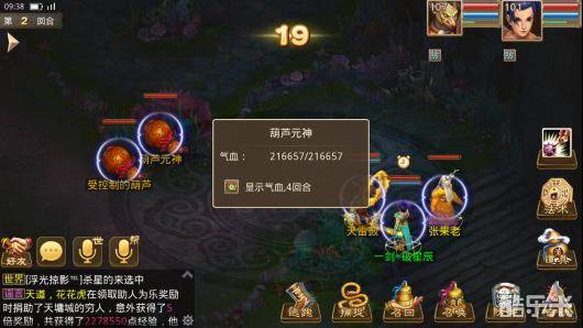受控制的葫芦血量在21W左右,速度在1000左右。不要打葫芦元神,张果老会拉辅助技能。建议用大秒,并且注意自身血量。