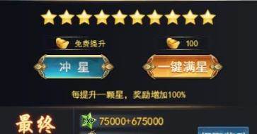 但是我们可以通过冲星来增加任务的星数,星数越多奖励越丰富。免费冲星有三次机会,往后就使用元宝了。当然用100元宝可以直接刷到满星。
