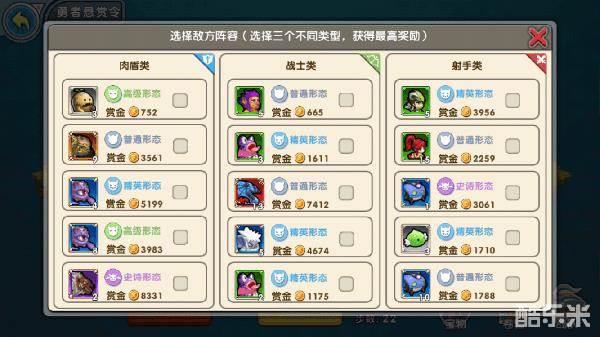 自己选择的地方阵容可以随便你自己选择,选3个就可以了,没有固定的,不一定要三个不同类型的怪,只是选择三个不同类型的怪金币奖励是×4倍的;对战过程中可以使用卷轴哦,注意的是卷轴用了就没了哦~