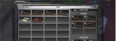 进入快捷栏配置后我们可以看到在下方的消耗品配置内是没有绷带的。那么我们就可以把绷带添加到快捷栏。
