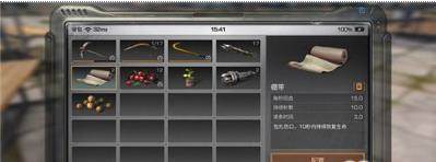 首先我们选择在左边的物品栏目内选择绷带,可以看到会出现一个界面,显示绷带的持续秒数以及回血。下面还有个配置的按钮