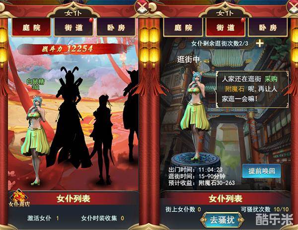 除了如梦如幻的修仙战斗,游戏当中还有着极富生活气息的内容。女仆系统可以说是这方面的典范。当女仆系统开放之后,玩家可以在自家的庭院中捕捉各个美丽的女妖作为自己的女仆,然后安排她们去街道采购、战斗。获得女仆之后,玩家获取附魔石和其他资源的几率大大提高,同时自身战力也会有所提升。