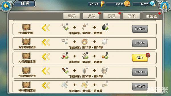 等级越高的藏宝图奖励越好,卡片品质越好,金币越多哟~