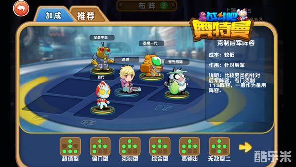 说明:比较另类的针对后军阵容,专门克制113阵容,一般作为备用阵容!