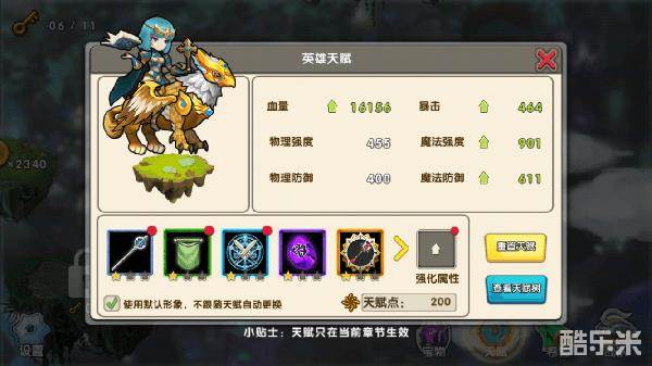 需要注意的是每个章节的天赋都只是在当时的章节有效;下一个章节需要重新打天赋