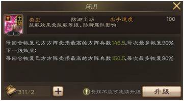 这是个回复技能,1级的闭月就可以回复146.5个兵数。