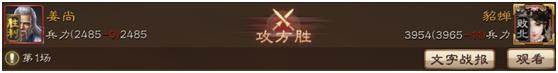 在很多战报中,姜尚对阵貂蝉的数据总是姜尚0伤亡,貂蝉损失几十兵力,最终姜尚以微弱优势赢得胜利而告终。