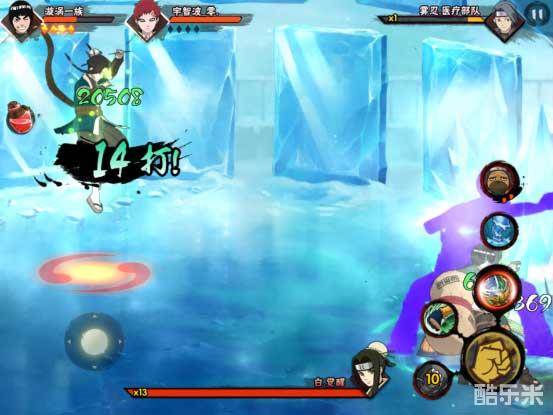 在冰柱爆炸之后,白便会出现在场景中,这时我们便可以抓住机会,打出一套攻击。不过,在被打倒地之后,白会获得一个暂时的无敌效果,然后释放冰遁·冰柱燕。马上向反方向飞跃,并向倒地处发射一系列冰柱攻击。这里建议在白倒地后,不要进行补刀追击,以免被打飞。