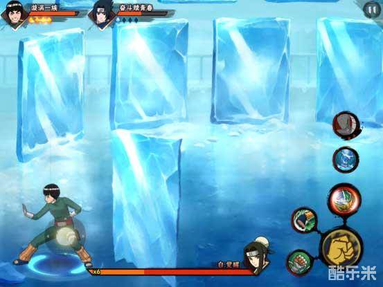 如果输出情况不理想,白也会施放魔镜冰晶。在面前结印制造冰镜,然后潜入镜中进行躲避、传送、攻击。在这里的建议便是一旦白出现,抓紧时间攻击,所有的忍术、奥义、通灵兽技能、秘技一齐释放。忍者的选择方面,首充送的李洛克攻技节奏很快、也比较好打出连招。如没有特别偏爱的忍者,建议使用李洛克。