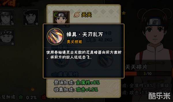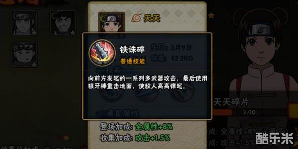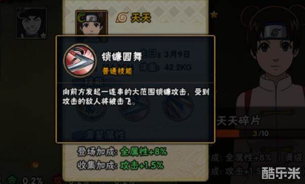 天天可以说是相当难搞的一个忍者,想必很多玩过拳皇的人应该知道,在格斗游戏里最恶心的是发波流,能虐死一大半的菜鸟,天天就属于这种角色,下面就看看在角斗场遇到天天时,漩涡鸣人可以怎么打。