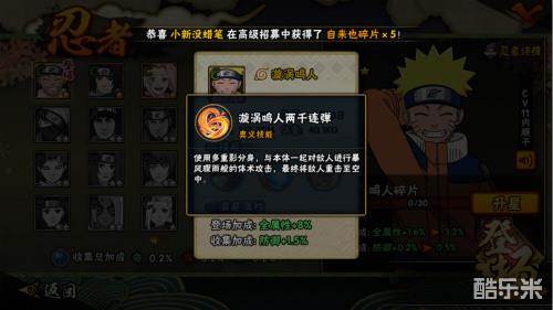 怎么样,看完了所有的介绍,是不是觉得很有收获呢?虽然鸣人是C级忍者,但是几个技能都很不错,相互配合完全不逊色与其他忍者,相信在大家的手中也能发挥出强大的战斗力。