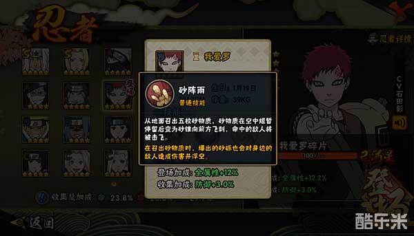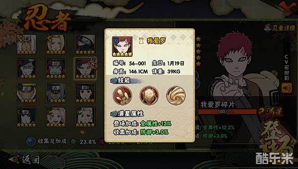 获得途径:集齐40个我爱罗碎片可激活我爱罗。