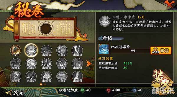水遁·水冲波:(Lv.0)以自身为中心,向四周扩散出水波,对敌人造成433%的伤害并击退敌人,冷却时间15秒。