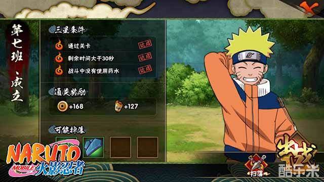 第一场景:本场景有两波敌人,第一波是4个忍犬·帕克,第二波是3个忍犬·帕克和个名忍犬·西巴。因为是第一章节,不管是这些犬类还是最后BOSS卡卡西难度并不是很大,但是依然不能掉以轻心。选择鸣人是因为这章节鸣人的剧情多,也是我们第一个接触的忍者,在技能上会特别熟练。对于这两波可爱的小狗,只需要利用影分身·双重踢击和螺旋丸交替打,并接上不断的普攻。毕竟鸣人皮糙肉厚,再加上小狗的攻击着实不高,直接刚正面很轻易满血过掉。同样,也是在这一场景积攒出奥义技。