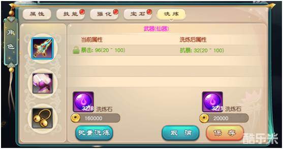 当玩家等级达到32级时开启装备洗炼,消耗洗炼石可以对装备的附加属性进行修改,得到自己想要的属性。洗炼属性的数量同样随着装备品阶的提高而增加。作为后期影响主角战力的主要系统,大家不要错过哦。