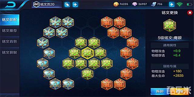 这套铭文属于综合性的加成铭文,又有攻速移速加成还有吸血加成,依旧是百穿铭文,在前期打肉伤害不俗。