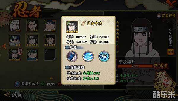 以上就是《火影忍者》手游关于忍者日向宁次的相关基础信息介绍,仅供参考,希望对大家有所帮助!