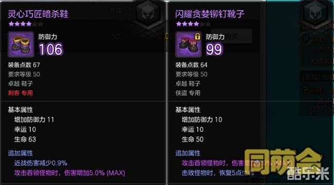 闪耀贪婪鞋子和灵心巧匠鞋子的对比也仅仅落后10多点防御力,虽然十来点防御力并无太大优势,但是如果是闪耀暴烈鞋子那么防御力就不仅仅差这么点了。