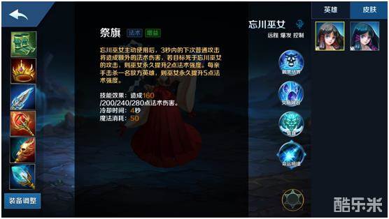 祭旗:法强法强法强。有了这个技能,小兵,野怪,英雄在忘川面前都是用来加法强。