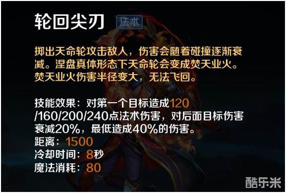 轮回尖刀,这个技能是金乌前期对线,清线和消耗的一个技能,不过这个技能要注意的一点就是他的伤害是逐渐递减的,开启大招后技能变为只有一段伤害,没有二段的返回。
