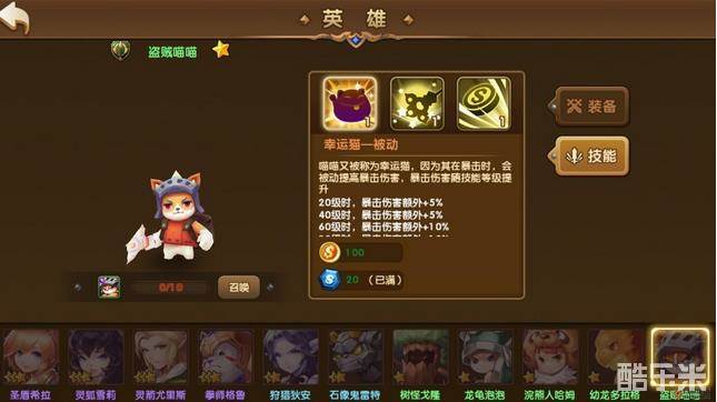暴击喵,就是看中它必定暴击的效果,起点虽然低,个人以为比较有发展潜力。