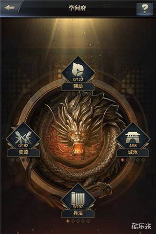 宫城乃立城之根本。在1-6级按照系统提示尽快升级即可,另外成长基金可说豪礼天降,在后期赠送的元宝非常丰厚。宫城7-9级期间可以通过观察升级耗时尽可能将各类建筑都弥补上来,但此时不建议过多生产低级士兵。在宫城10级之后当有所取舍。其中,校场、军事府、学问府优先升级,前两者影响带兵出征数量及军队容纳量,后者是后期发展速度的决定性因素。而马厩、兵营、工坊、靶场的等级次之,尽可能早开启高级士兵招募以节省粮草。而粮田、市场、计谋府等若前期无战事需求,可暂缓之。
