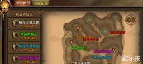 精英沙漠灵兽、精英蜥蜴王、精英荒漠骷髅、精英巨毒尾蜥、精英诅咒毒蝎、精英牛头怪和精英弗洛魔,分布在路上各个关键点,守着大量的经验和九阶、十阶和十一阶装备。