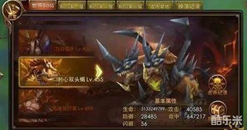 地图上共有五只BOSS:荒漠射手、真理巨灵、刺心双头蝎、荒漠修行者和荒漠修格斯。每位大BOSS都身携宝藏,等待各位勇士前行挑战。以刺心双头蝎为例,通过这位毒蝎BOSS挑战的玩家,将有机会获得幻彩原石(合成幻装的必须材料)、凤凰尾羽、十阶十一阶红装、十阶十一阶橙装、完美强化晶石。