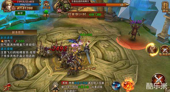 在副本中,击杀怪物会积攒怒气值,击杀地精王获得更高收益的同时也会积累更多的怒气值。怒气值满1500或副本时间用尽时,副本结束,玩家会自动传出地图。