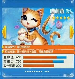 喵萌萌在得分加成方面也相当给力,8%的得分加成可以让玩家游戏分数飙升至一个高大上的数字,身价由百万富翁一下晋升为亿万富翁,妥妥的直奔榜首而去~也许你和第一名之间只差了那么一道关卡,也许你和你的竞争对手相比只隔了那么一层薄纱,喵萌萌带你飞跃关卡、帮你捅破薄纱,特技“喵喵福气”帮助玩家在原有的游戏得分上加成8%,如火箭般搭载玩家在游戏分数上向前冲,啊!沿途风景多么美好!高处空气多么清新!选择喵萌萌同行,站在巨人的肩膀上欣赏风景!喵~