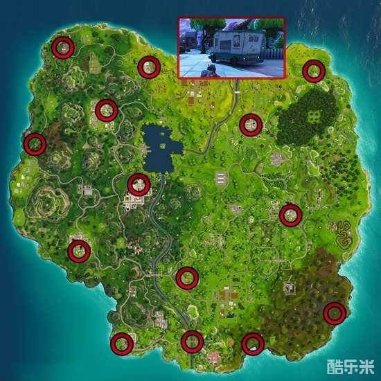 找到并站在五个不同的冰淇淋卡车边上。当你看到五彩纸屑飞出卡车时,就说明已经找到这个卡车了。