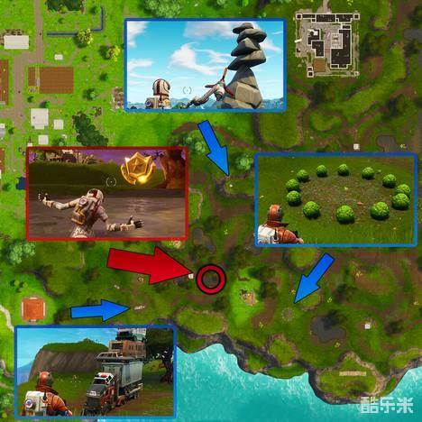 令牌位于车辆塔楼,岩石雕塑和位于地图东南角的树篱圈之间。有关确切位置,请查看H9象限的左侧部分。它在沼泽的水中!