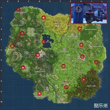 在五个不同的跳舞标志前面使用表情。这些标志遍布整个地图,共有十五个: