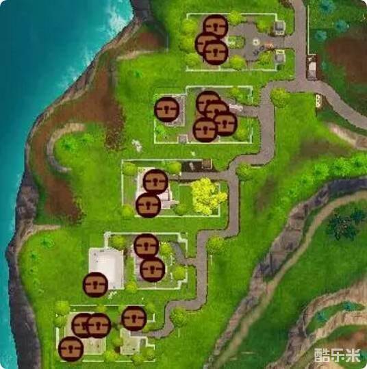 在地图西侧的一小排奢侈房屋 Snobby Shores 上打开七个箱子