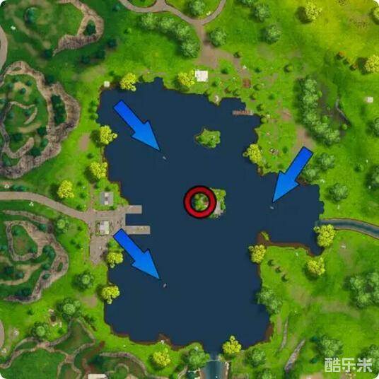 寻找三艘船之间的特殊标志。 Loot Lake 的湖中。